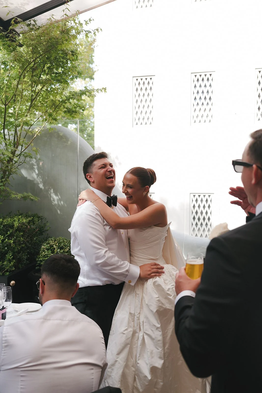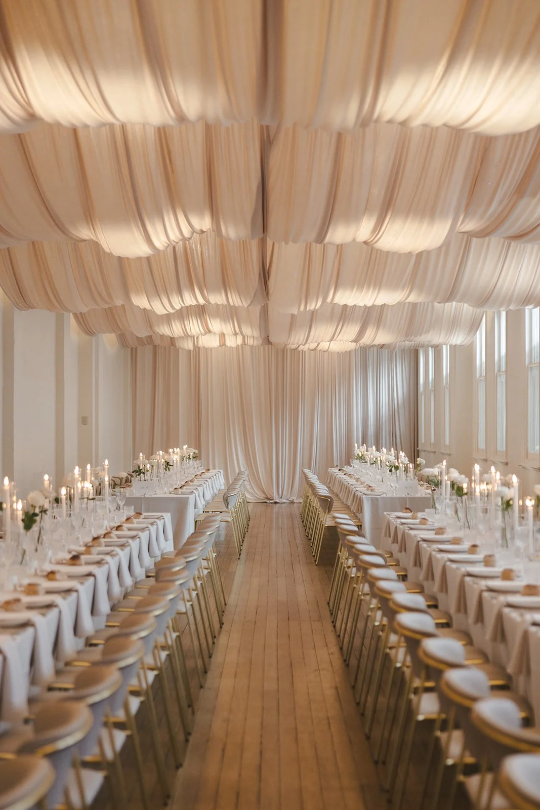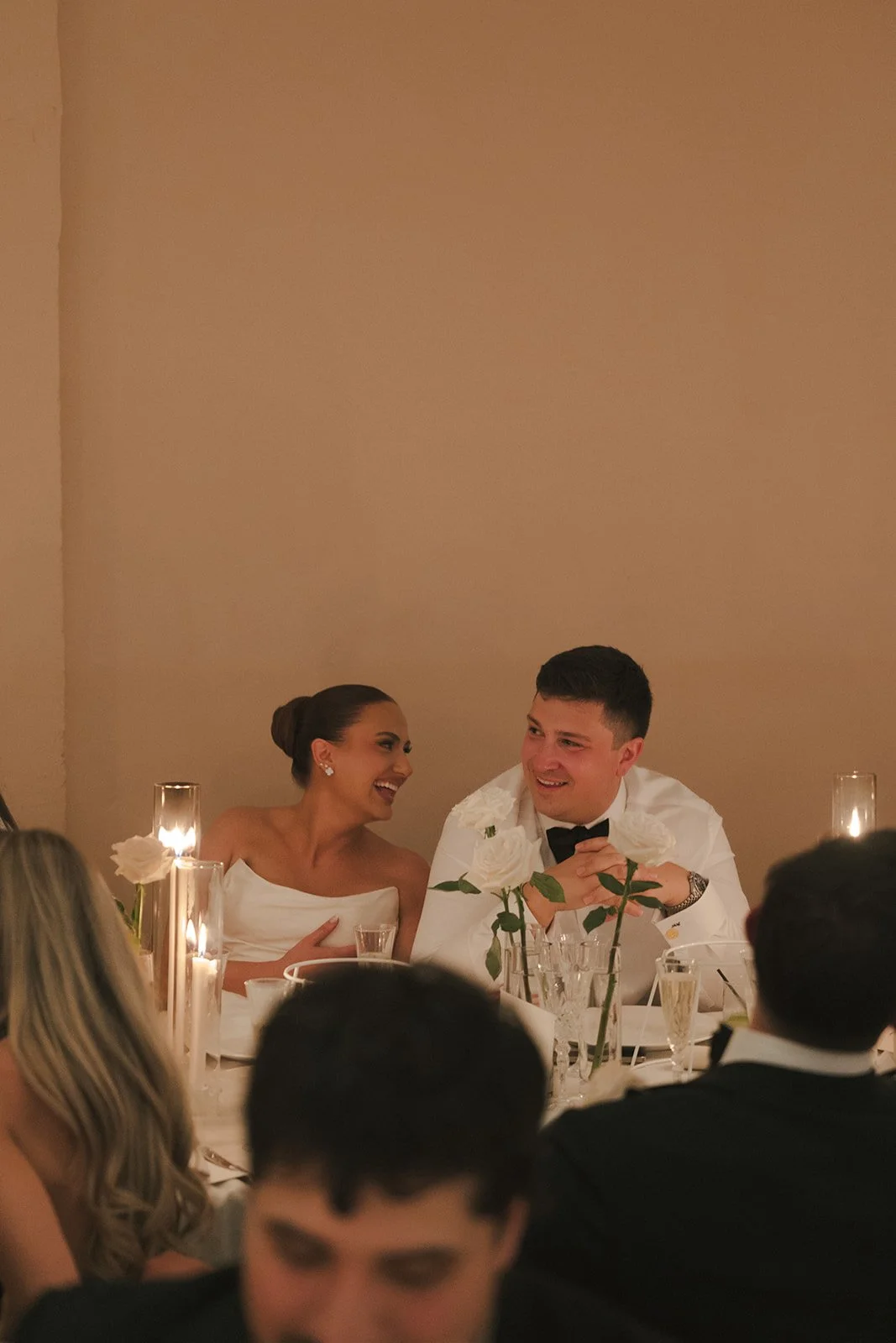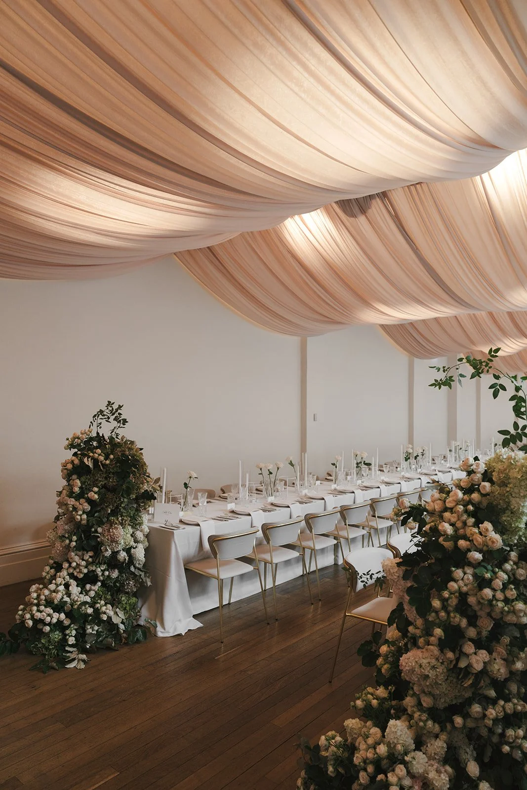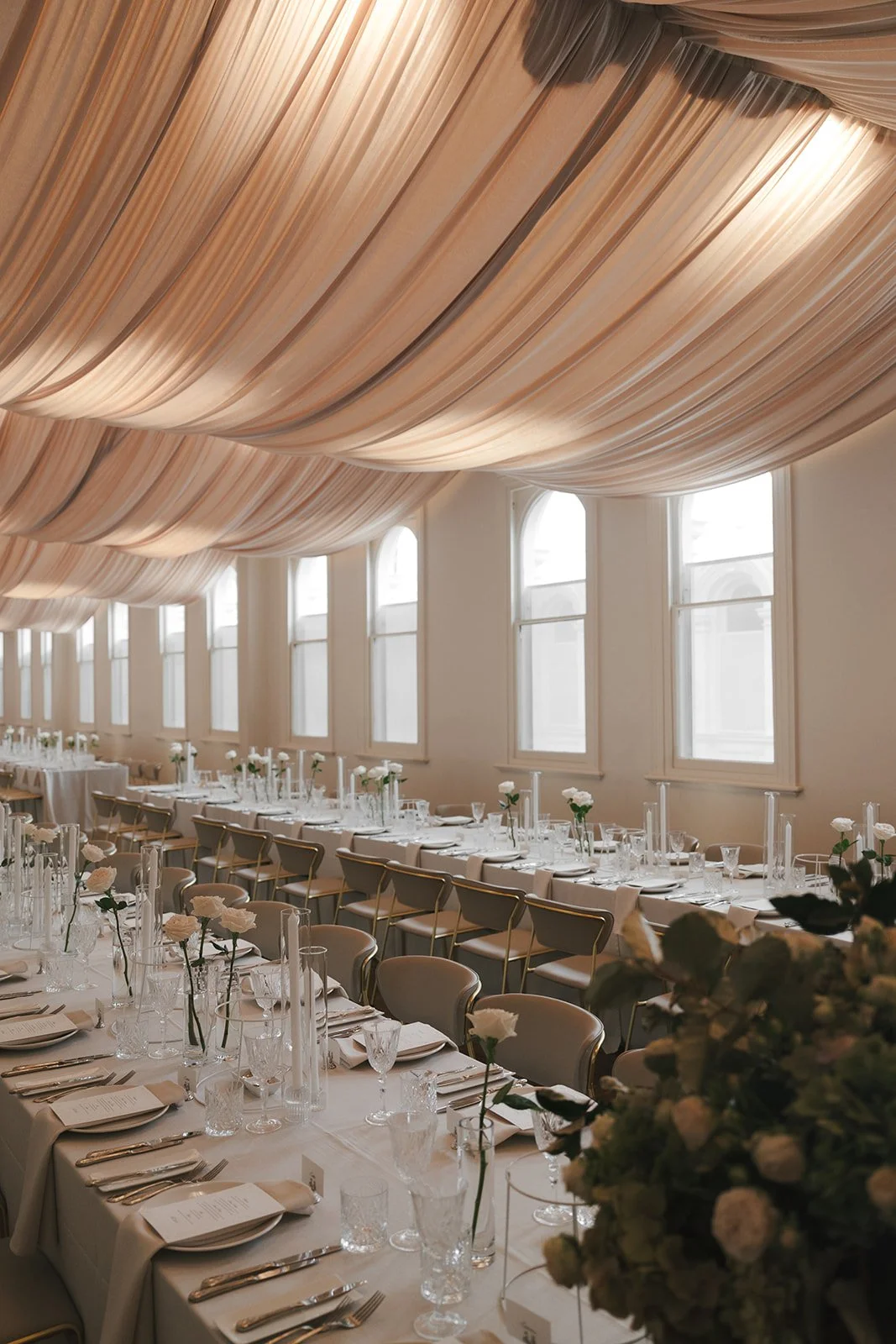 The reception unfolded like a world of its own at the Sophia at the Prahran Arcade. Soft, romantic, and immersive - where artful draping was the focal point on the ceiling, delicate hues wrapped the space in warmth, and candlelight. Every detail was considered, creating an atmosphere that felt intimate, dreamy, and enchanting.