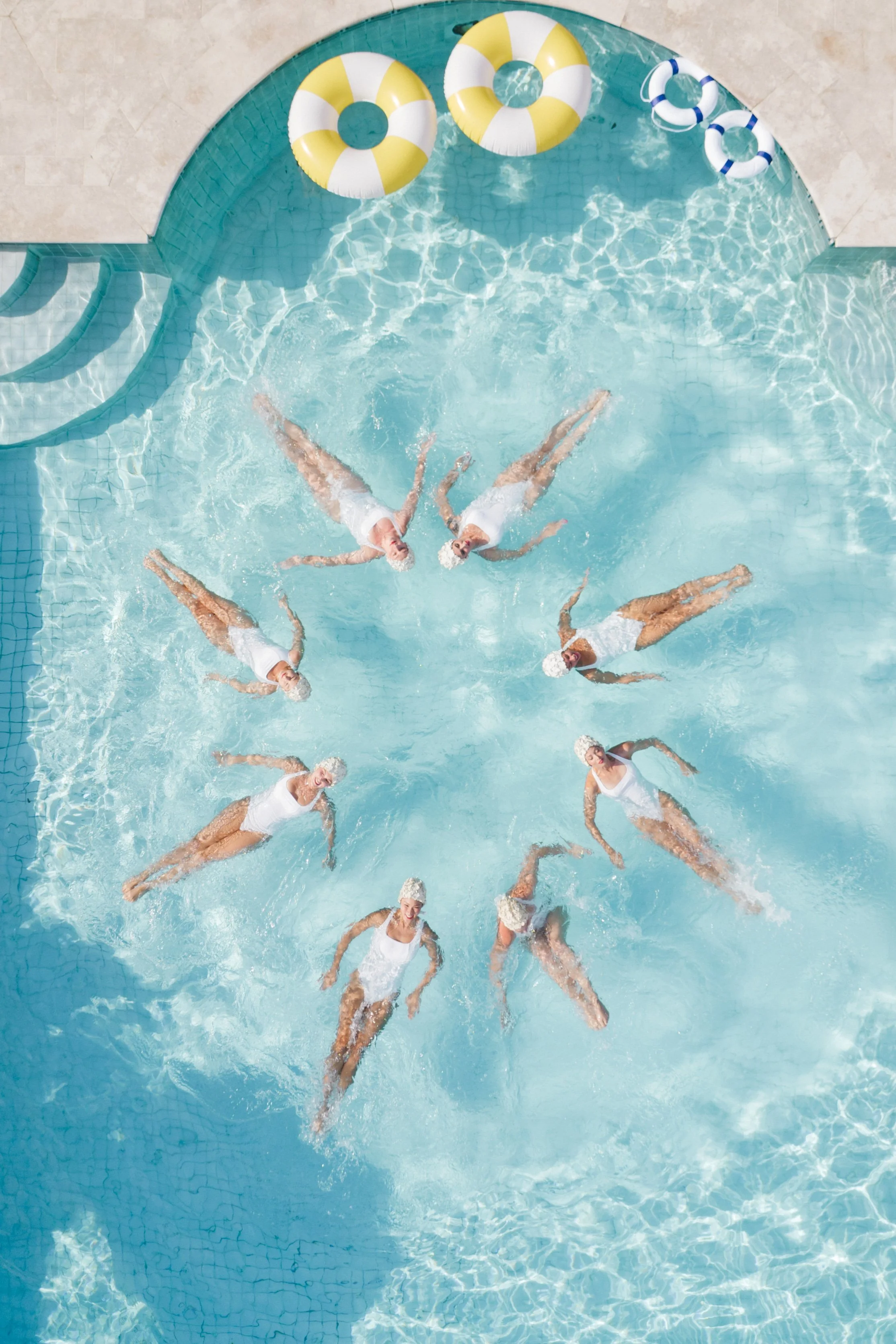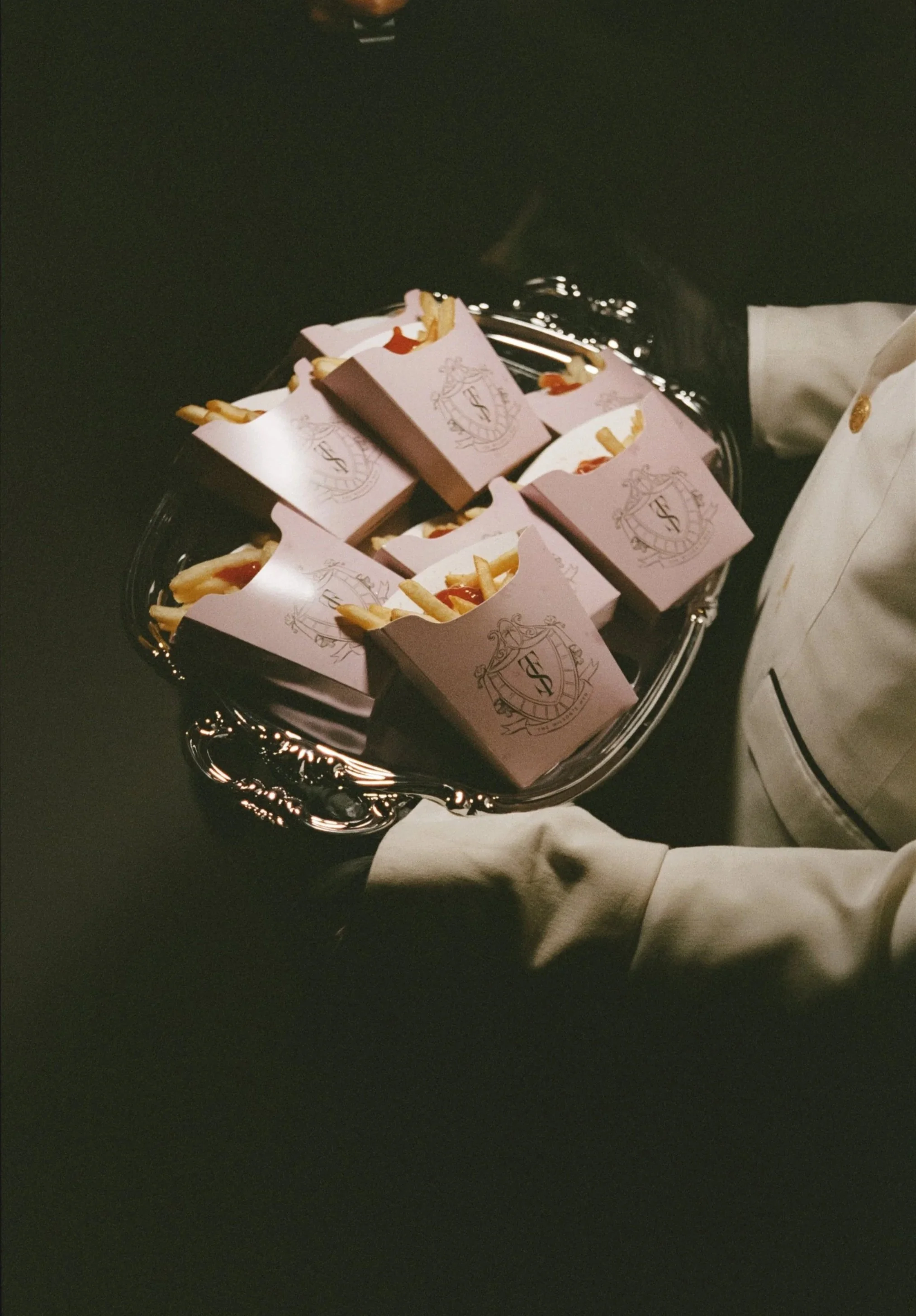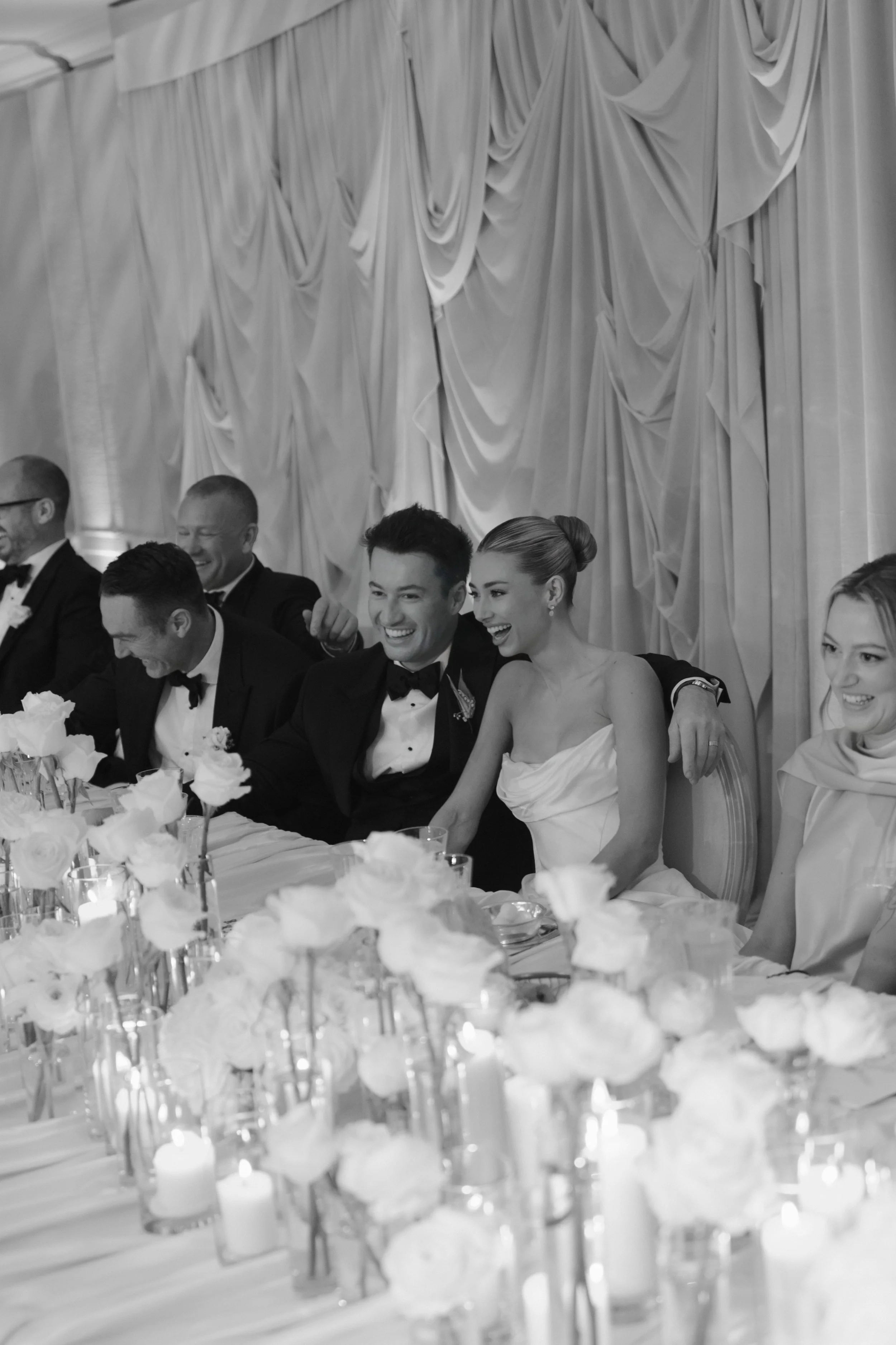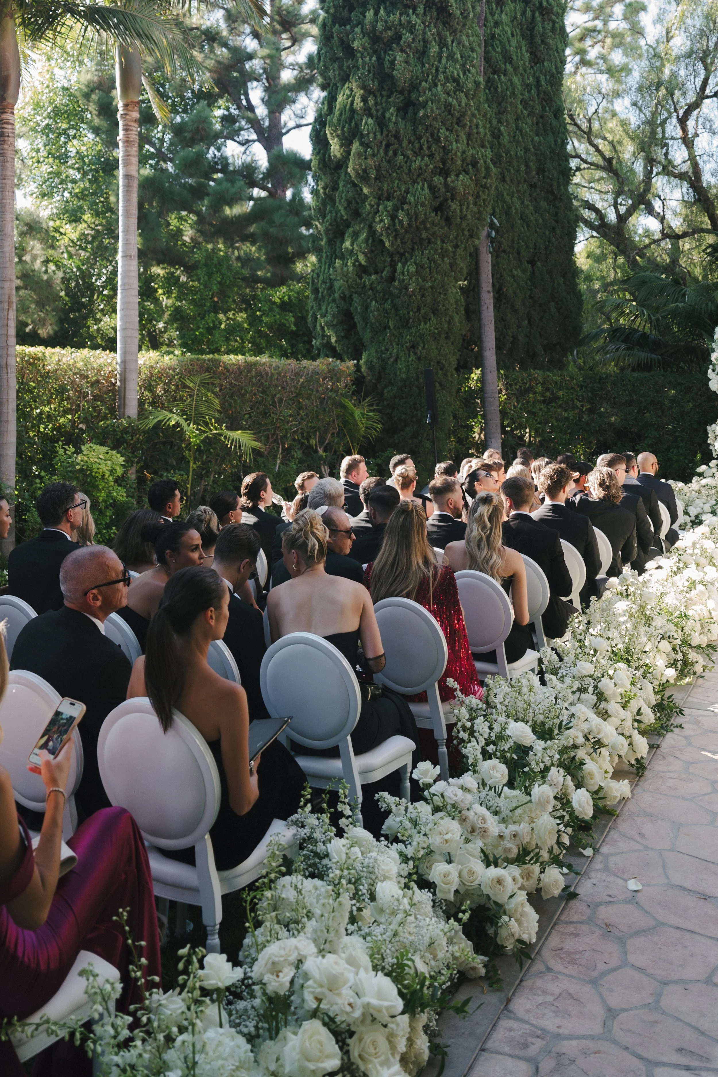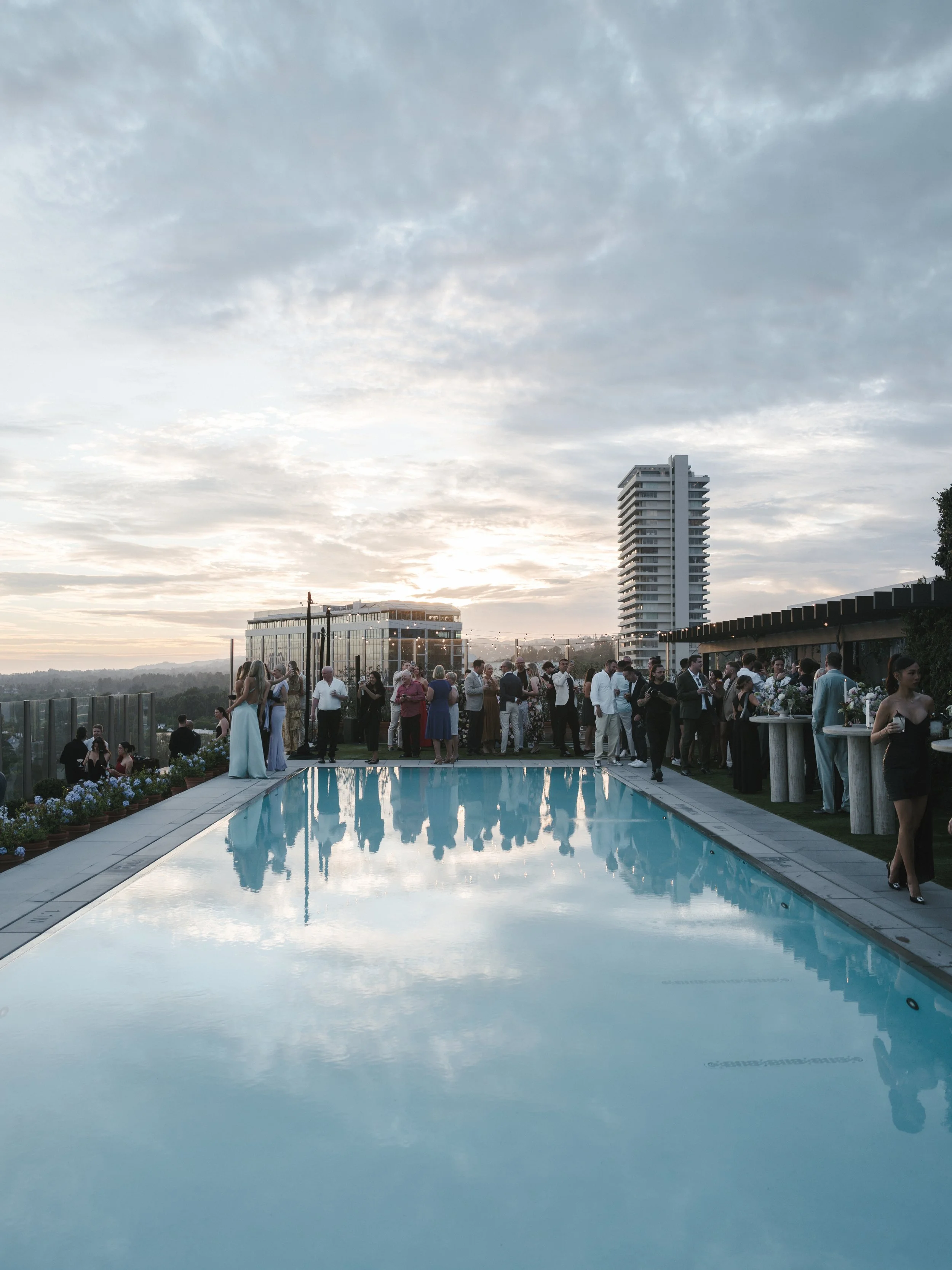 The celebration continued the next day with a recovery at the Beverly Hills Pool Club: a Slim Aarons–inspired pool party that brought an iconic poolside fantasy to life. Personalised details featuring the bespoke wedding logo, “The Wilsons Wed,” adorned towels, food and beverage carts, and the DJ booth. From synchronised swimmers to sun-drenched revelry, every detail radiated thoughtful luxury, playful opulence, and effortless Hollywood glamour.