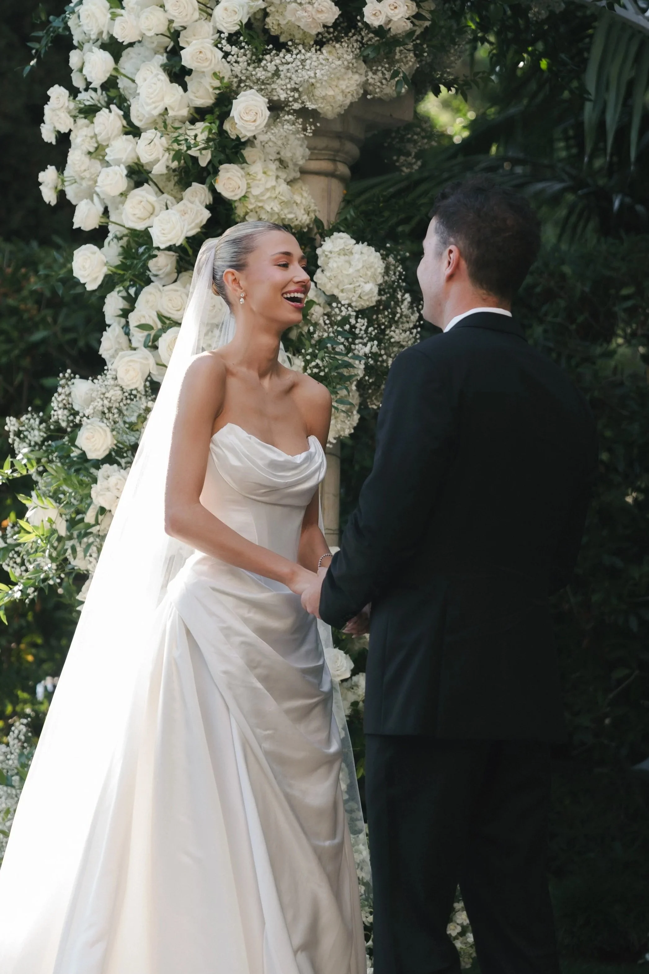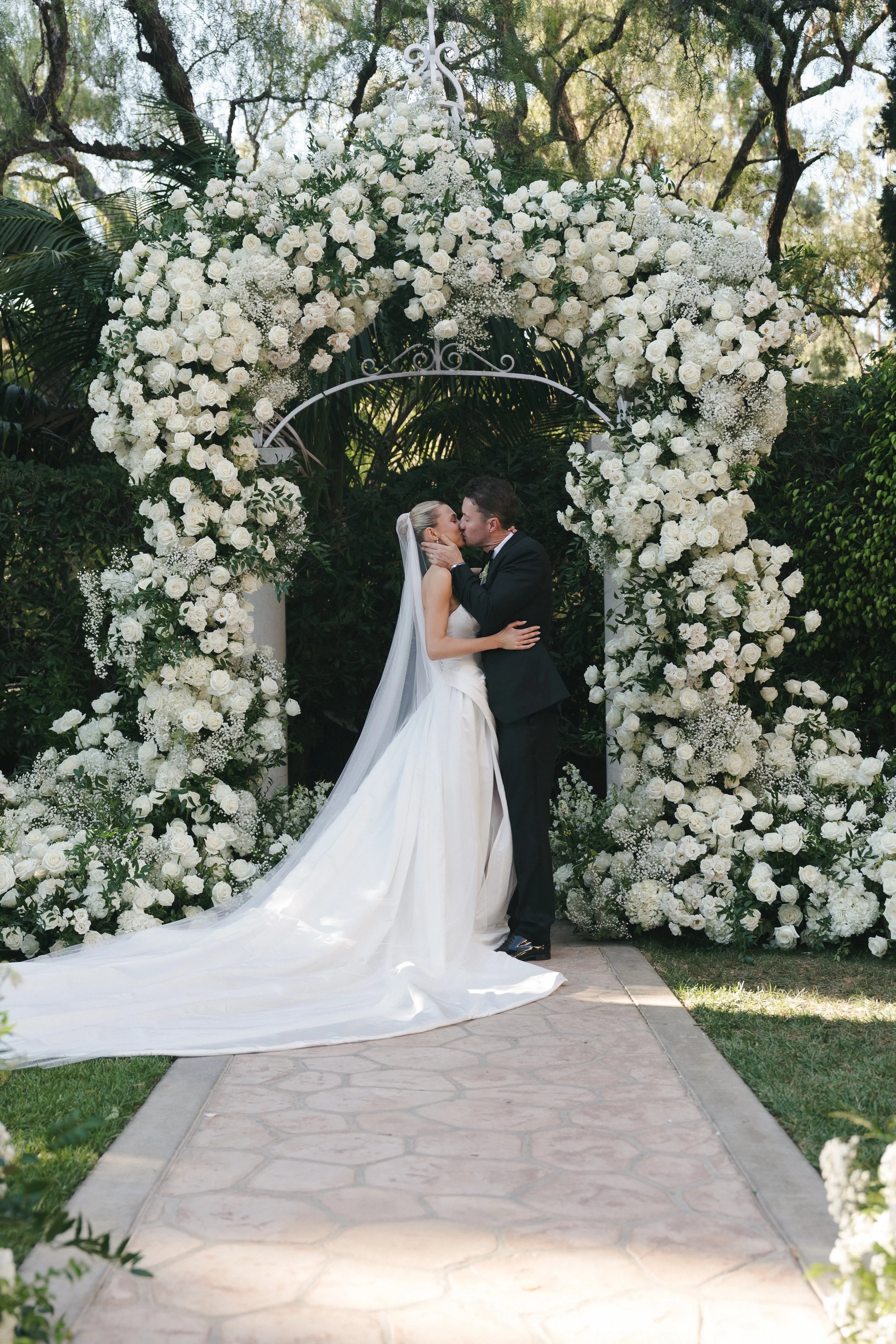 The wedding was a celebration of vintage charm, classic glamour, and timeless romance, as nuptials unfolded at the iconic Beverly Hills Hotel. The wedding day seamlessly blended old and new - beginning with a lush garden oasis ceremony, followed by a reception steeped in elegance. Dramatic draping, glittering chandeliers, and the smooth, nostalgic sounds of a Sinatra-style crooner accompanied by piano set the tone for an unforgettable evening.